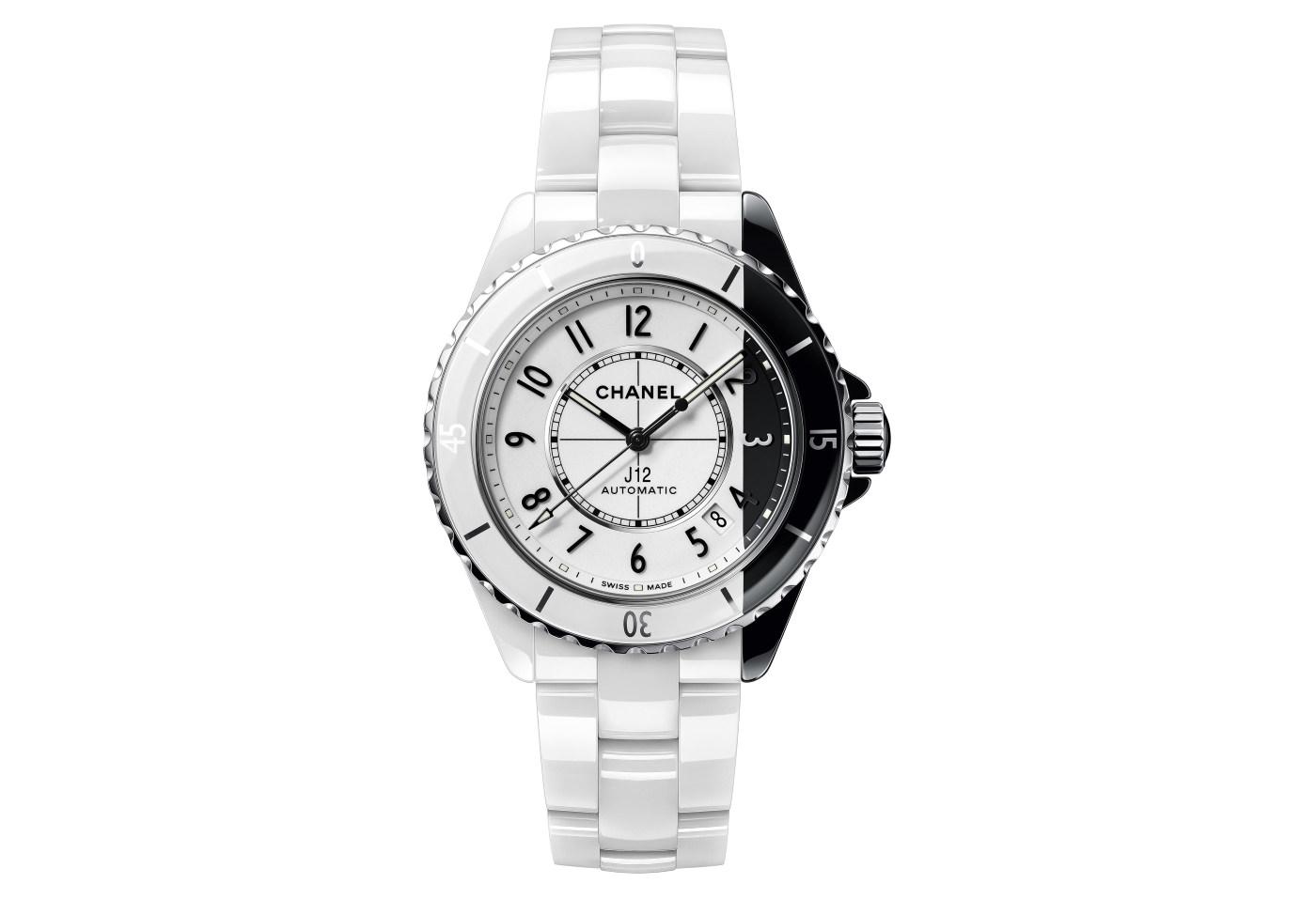 传统的J12有两款颜色,黑色和白色。2020年的新款J12其外观设计为黑白两种颜色的拼搭。这是一个大胆的尝试。但是,J12再一次证明了自己,它能够适应不同的变化。如此明暗交错的设计,展现了香奈儿二十多年来不断精进的陶瓷技艺。这一配色上的改变看上去似乎很简单,然而要将表壳的两部分切割再进行无缝连接在技术上是非常具有挑战性的。过程无比艰难,但效果也十分令人惊艳。它搭载天文台认证,12.1自动上链机芯。